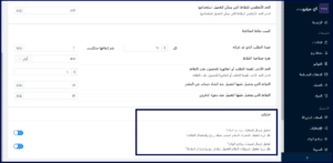 أيضاً تجد في الخيارات بعض الخيارات الإضافية للتحكم ببعض الإضافات حيث يمكنك إظهار مقدار النقاط التي سيتم ربحها في المتجر وتفعيل أو إلغاء تفعيل إرسال إشعارات برامج الولاء للعملاء كما يمكنك تفعيل وإلغاء تفعيل وصول إيميلات للعملاء لتنبيههم بمقدار النقاط الحاصلين عليها وما شابه من أمور برنامج الولاء كما في الصورة:
